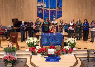 Many individuals and groups are involved in this ministry–adult and children’s choirs, men’s and women’s ensembles, instrumental players, and band members.